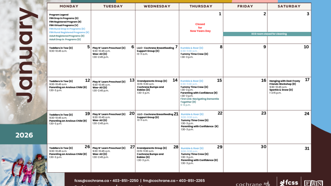 - Seniors programming, now featured as Aging Well Weekly in the Cochrane Eagle.