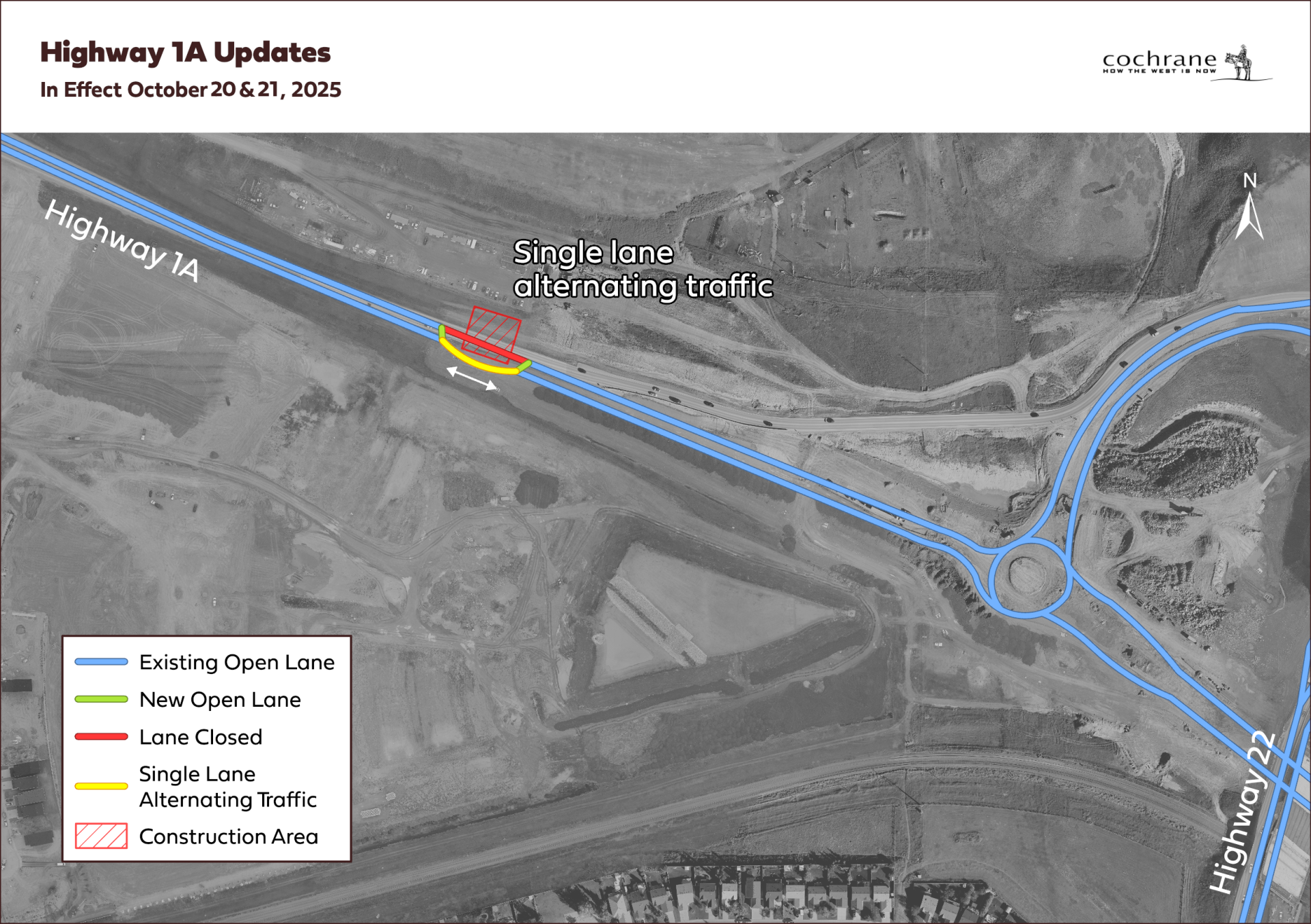 October 17, 2025: 🚧 Traffic Update: Highway 22 & Highway 1A Interchange 🚧