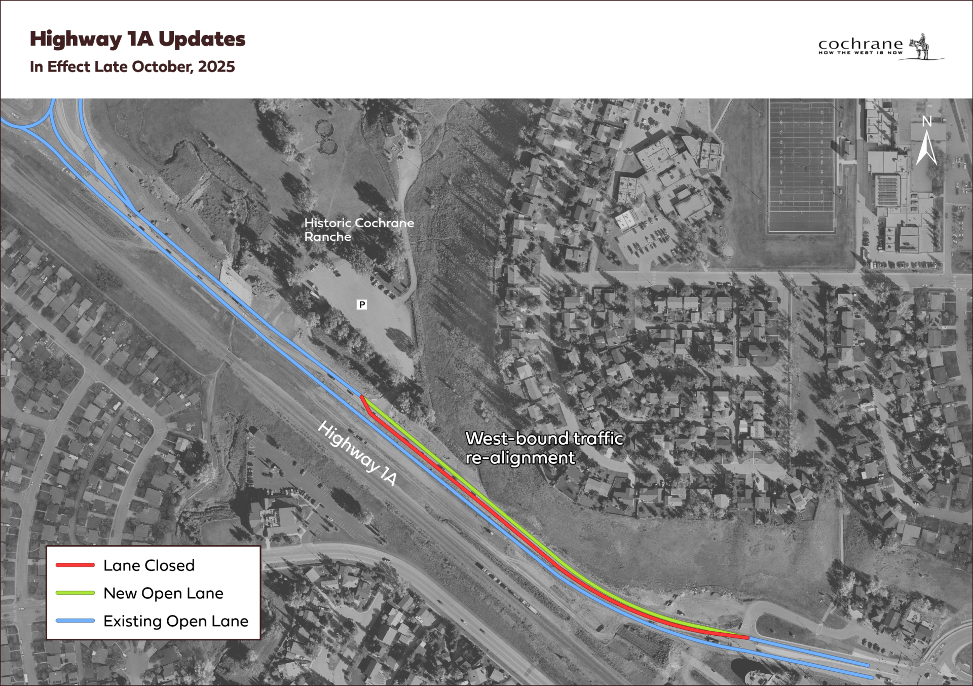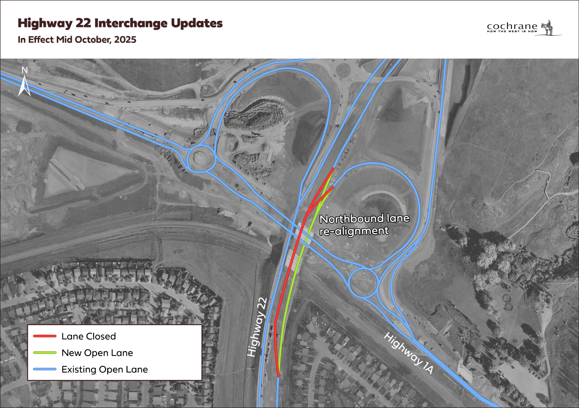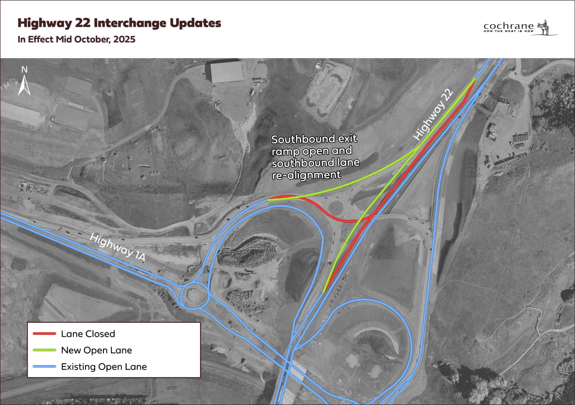 Alberta Transportation has shared details about upcoming lane realignments and ramp openings as part of the Highway 1A/22 interchange project.