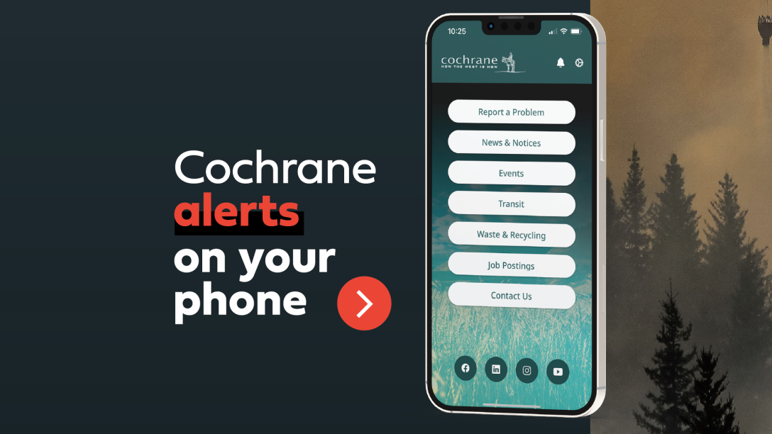 Download the Cochrane App and Alberta Emergency Alert App to receive alerts, evacuation notices and critical updates—helping you stay informed during local emergencies.
