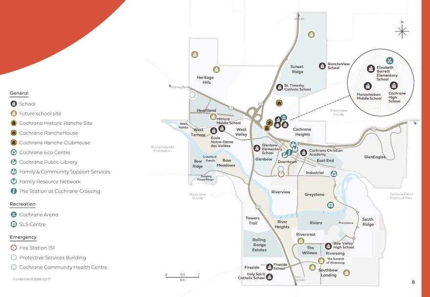 Cochrane is home to a diverse mix of vibrant residential communities. From established neighbourhoods with mature trees and walkable parks, to newer developments featuring modern homes and scenic views, Cochrane’s communities support a wide range of residents, from young families and commuters to retirees and long-time locals.