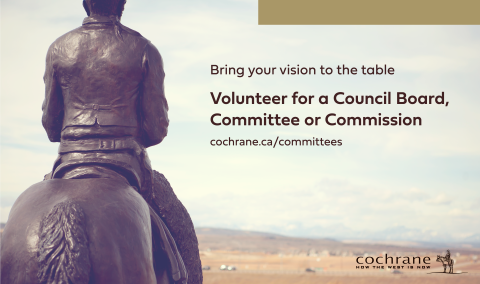 (Cochrane, AB) – The Town of Cochrane is recruiting dedicated individuals to serve on a Board, Commission or Committee (Council Committee). Eighteen public-at-large positions are available on Council Committees, inviting Cochrane residents to bring their voice, vision and abilities to collaborate with members of Council and Administration on important Cochrane matters.